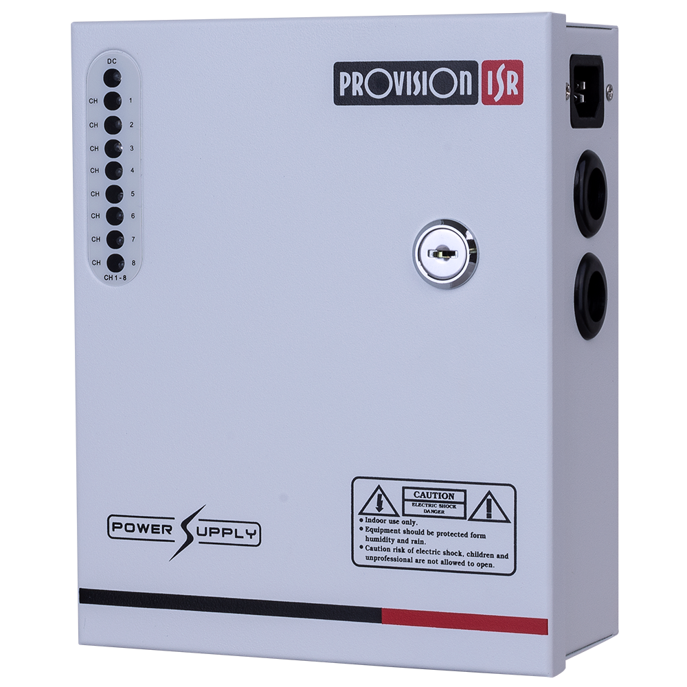 ספק כח מתקדם לארון תקשורת, 12V 5A, עם 8 ערוצים מוגנים ונורית חיווי – דגם PR-5A8CH